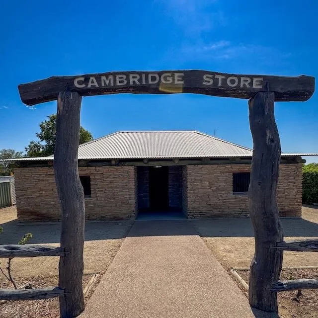 One morning, before the temperature climbed into the forties, we wandered over to the Cambridge Downs Heritage Display Centre in Richmond. The building itself is a full-scale replica of a 19th-century homestead, built from local stone, and it’s beautifully done. Inside, there’s a small but fascinating collection of artefacts, old photographs, and stories from the early pastoral days.